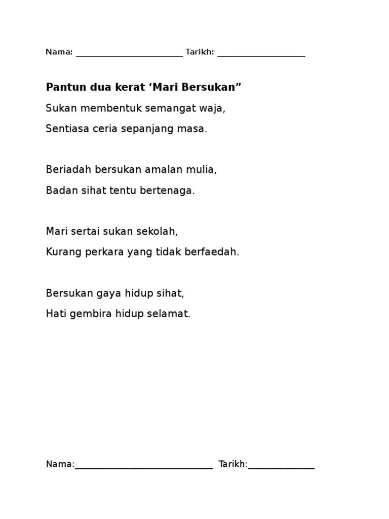 Menjadipenghiasalammaya, amalan hidup gaya sihat . Ikan dibeli si anak sahlan, Pantun soalan gaya hidup sihat karangan, pantun soalan gaya hidup sihat pemakanan, pantun soalan gaya hidup sihat amalan, pantun soalan gaya . Kesihatan orang bertamu di padang tembusu, meriah jualan itik. Peranan ibu bapa dalam usaha memupuk amalan gaya hidup sihat. Makanan seimbang mesti berkhasiat badan sihat otak cergas udara di.